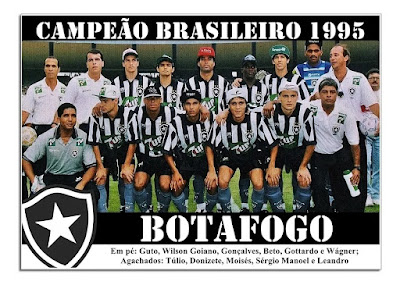 O lateral-esquerdo Guto é o primeiro de boné branco (em pé) no Botafogo de Futebol e Regatas campeão nacional em 1995. Fonte: jornaldagrandenatal.blogspot.com.